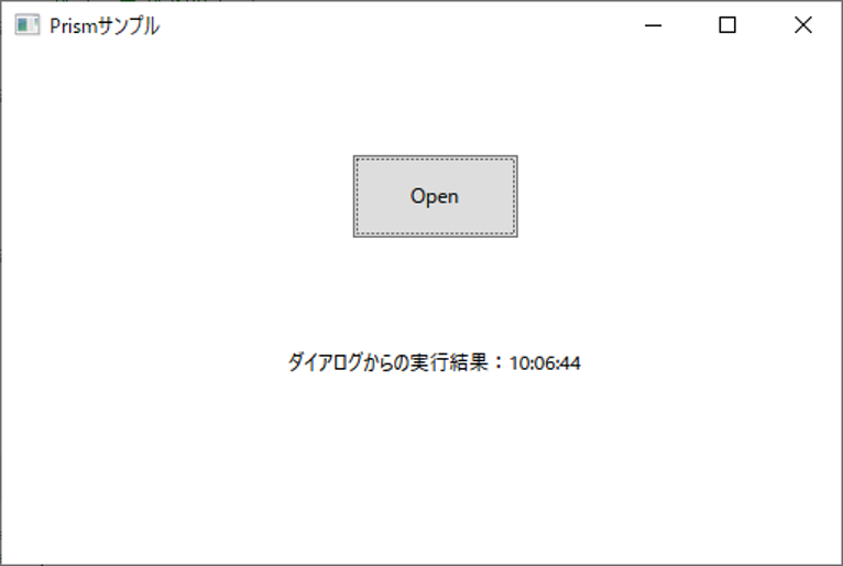 「Open」ボタンが押下されたら、ViewModel(SampleViewModel.cs) の OpenDialogCommand が実行され、ダイアログが表示されます。